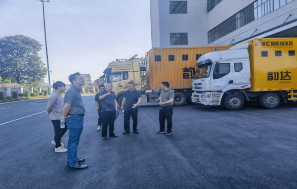 | 韵达快递湖南省公司总经理杨继根、市邮管局党组书记、局长姚飞翔来金汇物流园视察指导工作 |
