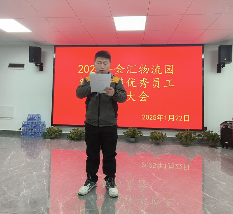 1月22日上午,市交投集团下属子公司益阳金汇物流园2024年度快递优秀员工表彰大会在金汇智能物流园园区举行。集团公司党委委员、纪委书记胡坚出席会议并讲话。益阳金汇物流园全体班子成员、各部门员工代表及快递员代表参加会议。 益阳金汇物流园常务副经理刘琛致辞,副经理李世慧宣读了快递优秀员工名单。授予夏鹏等7名员工“优秀快递员”称号,授予盛卫涵等3名员工“优秀操作员”称号,授予李志玲等2名员工“优秀客服”称号,授予宋俊“优秀结算”称号。
