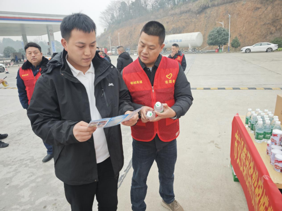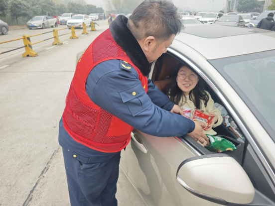 在活动中,志愿者们身穿醒目的红色马甲,仿佛冬日里的一抹暖阳,穿梭在益阳南服务区的每一个角落。他们面带微笑,热情洋溢,为这场春运志愿服务活动注入了无限的活力。一部分人负责发放安全出行手册,向司乘人员详细讲解春运期间的行车安全知识和应急处理措施,提升大家的安全意识。另一部分人则准备了方便面、八宝粥等便民物资,为长途跋涉的司机和乘客提供贴心的服务,让他们在寒冷的旅途中感受到一丝温暖。